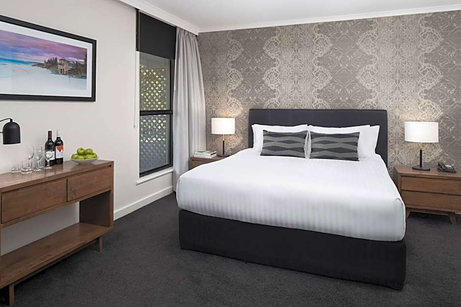 Stay in our comfortable Superior Pool View Rooms, with a balcony overlooking one of two tropical swimming pools. Each room is presented with simple yet elegant décor, a queen size bed and a modern ensuite with complimentary personal amenities. Our Fremantle accommodations is located right in the heart of this vibrant city within walking distance to all attractions and amenities. Or stay in and relax with the 50-inch ULTRA HD LCD television with Streamcast, 24-hour room service and unique mini bar offerings, as well as high-speed WI-FI and broadband internet.